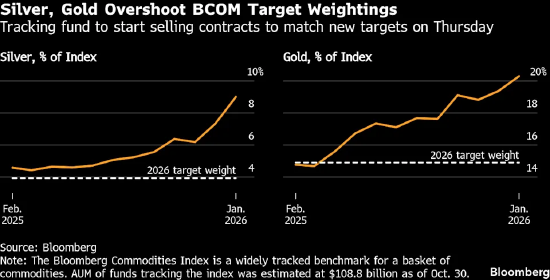 受近期波动影响,周四跌幅超3%的白银面临大幅抛售的风险尤为显著。花旗集团估算,为满足再平衡要求,市场或抛售价值约68亿美元的白银期货,这一规模相当于纽约商品交易所白银期货未平仓合约的约12%。